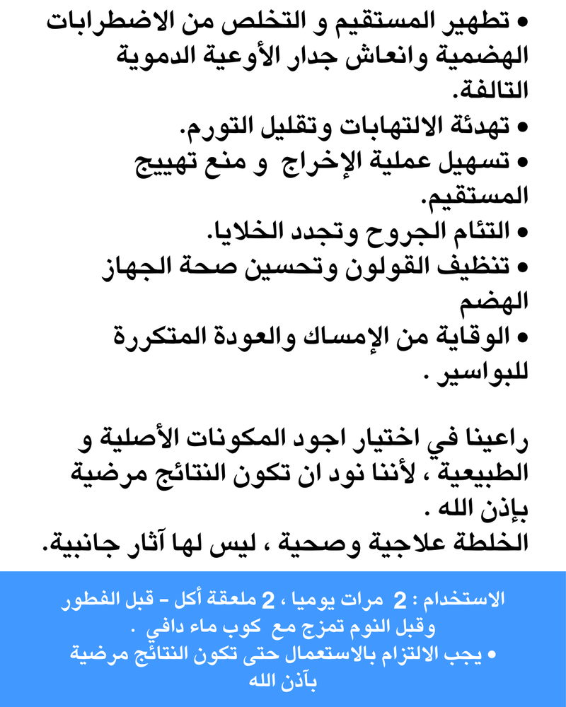 علاج فعال للتخلص من مشاكل التهاب البواسير ، مطهر طبيعي للمستقيم ، تحسين الدورة الدموية و تنشيط الأوعية .