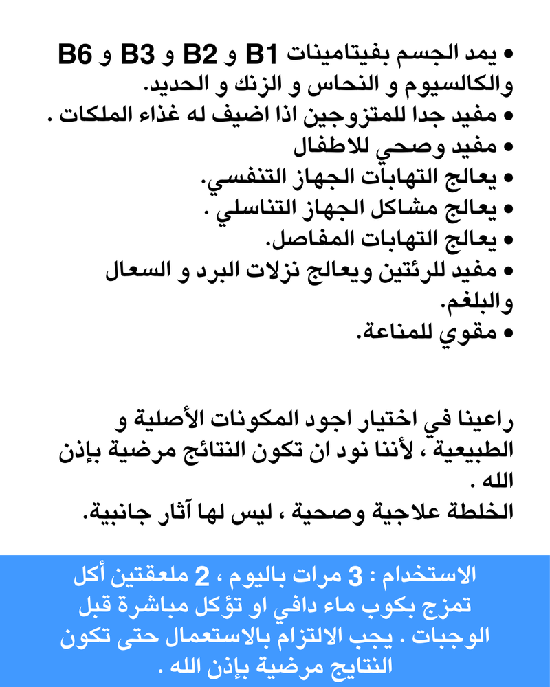 • ⁠مفيد جدا للمتزوجين اذا اضيف له غذاء الملكات .